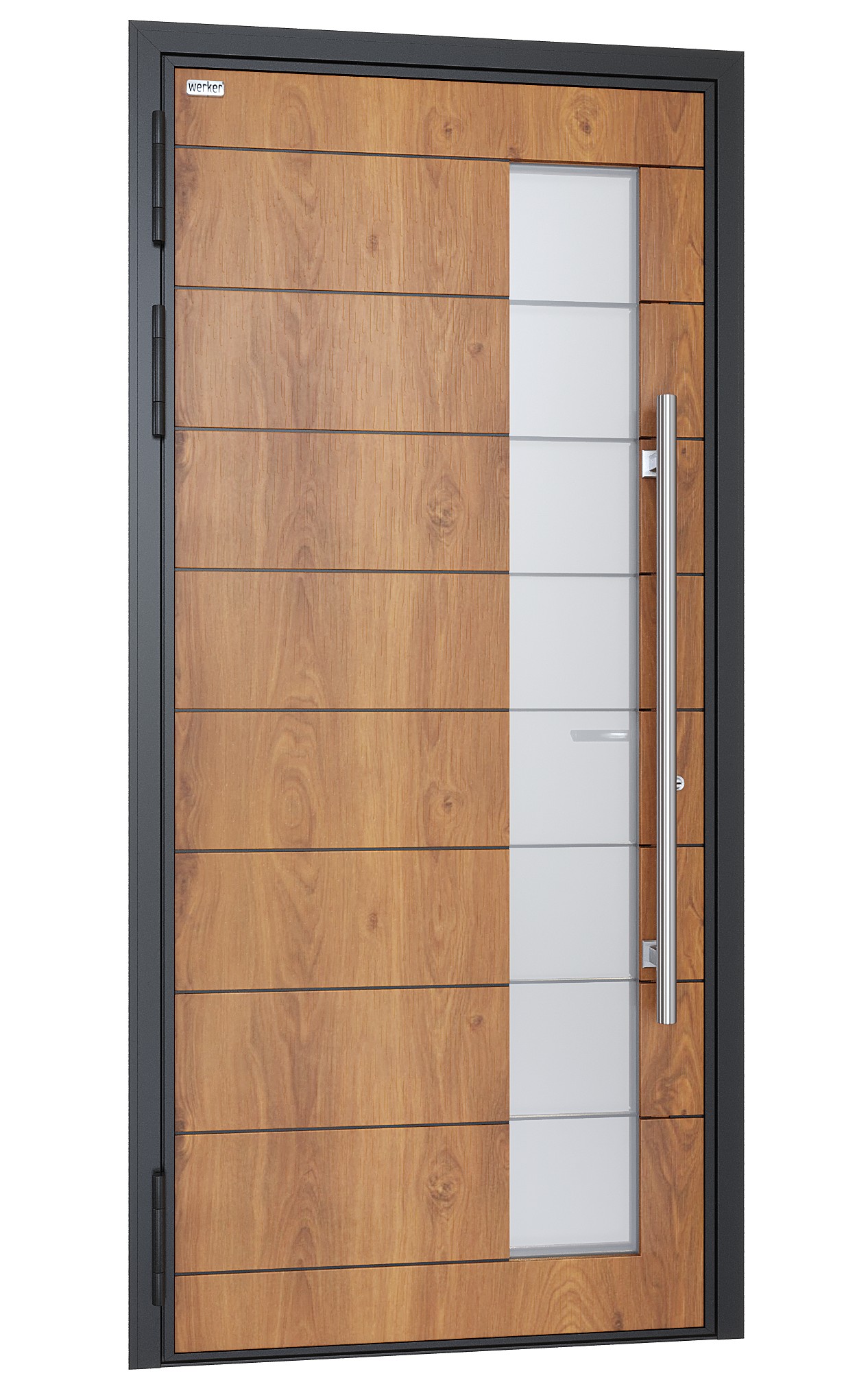 Входная дверь с терморазрывом для частного дома с декоративной отделкой HPL-панелями и структурным 3-х камерным стеклопакетом.